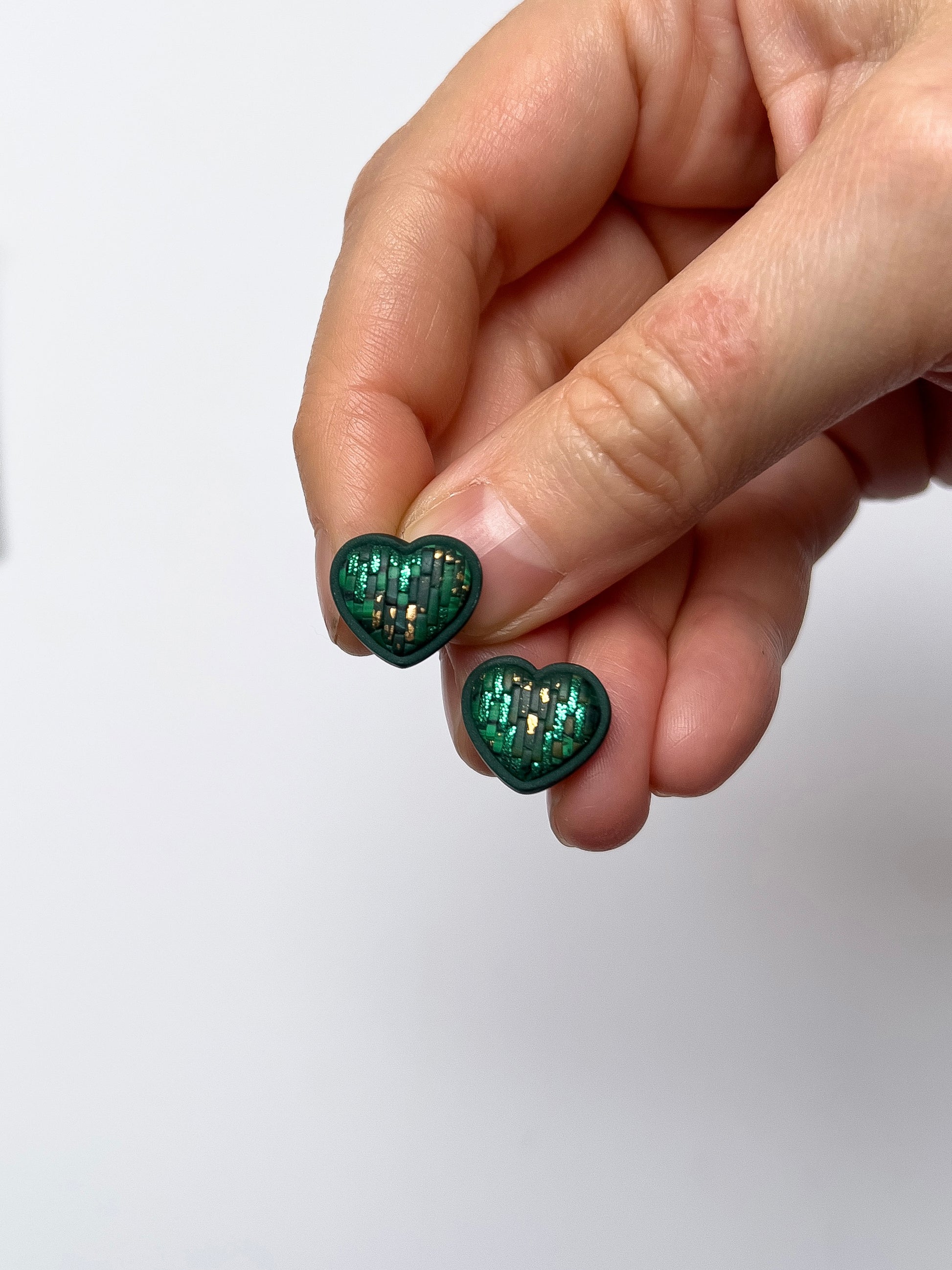 Green Bargello Heart Studs